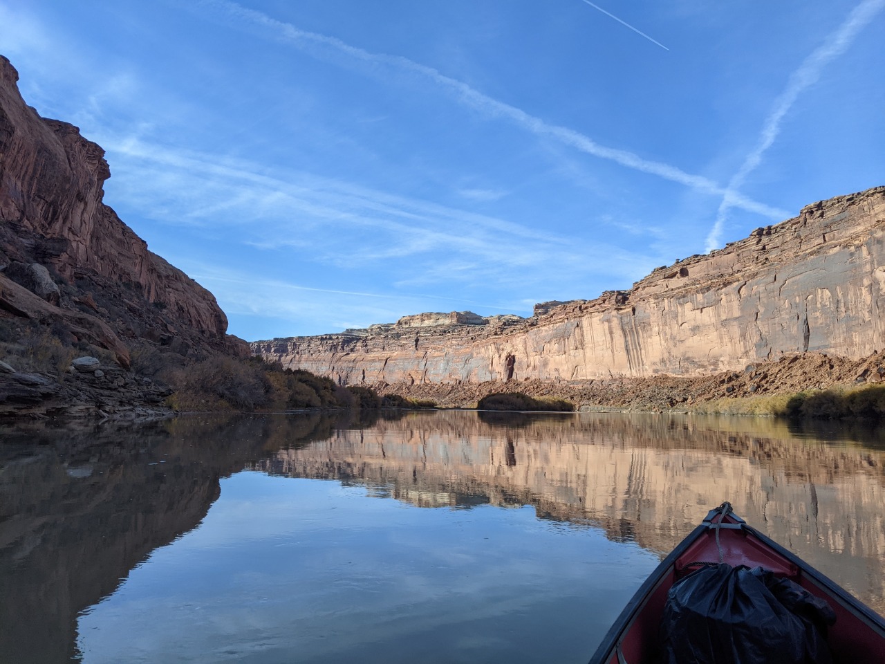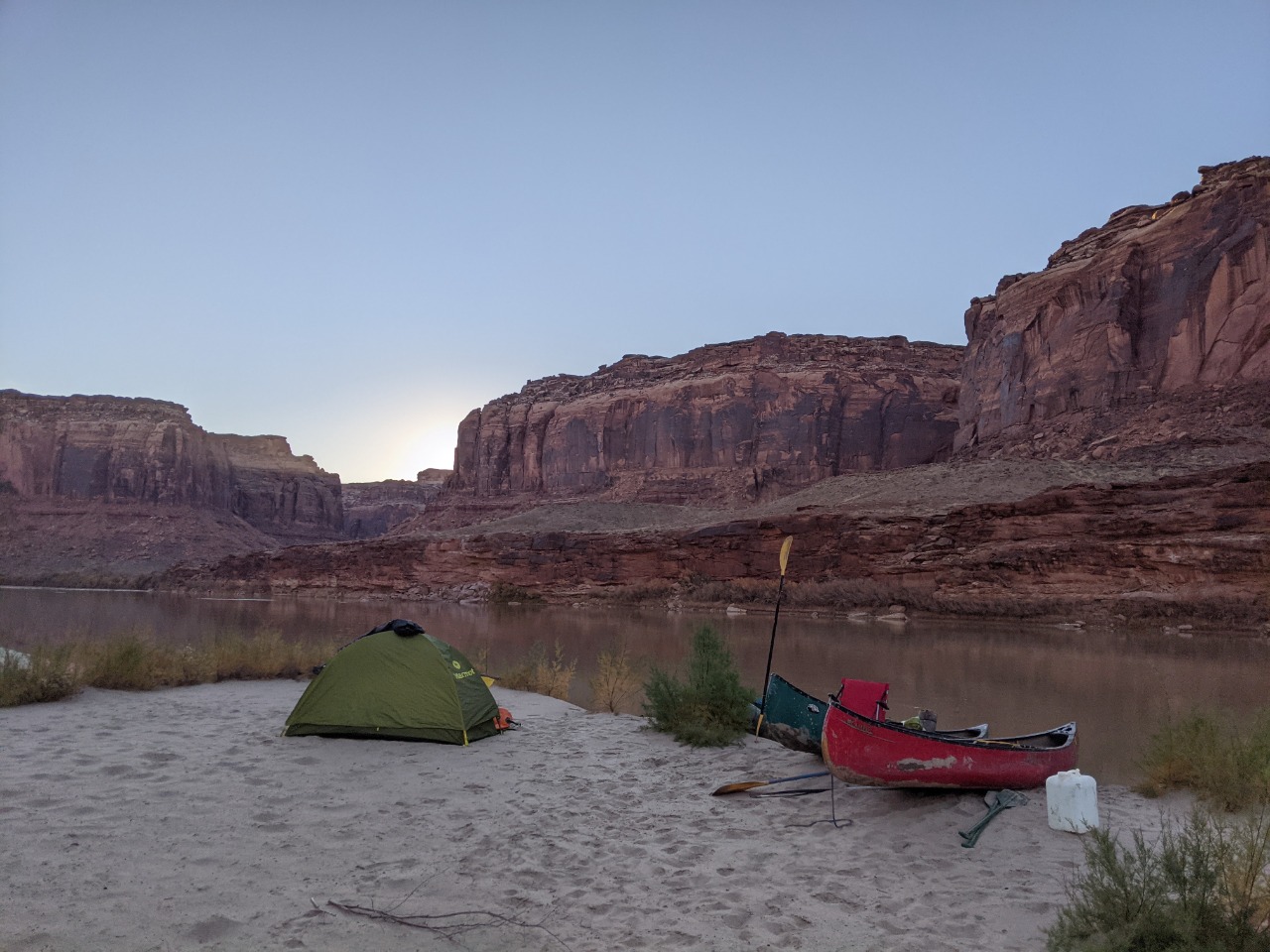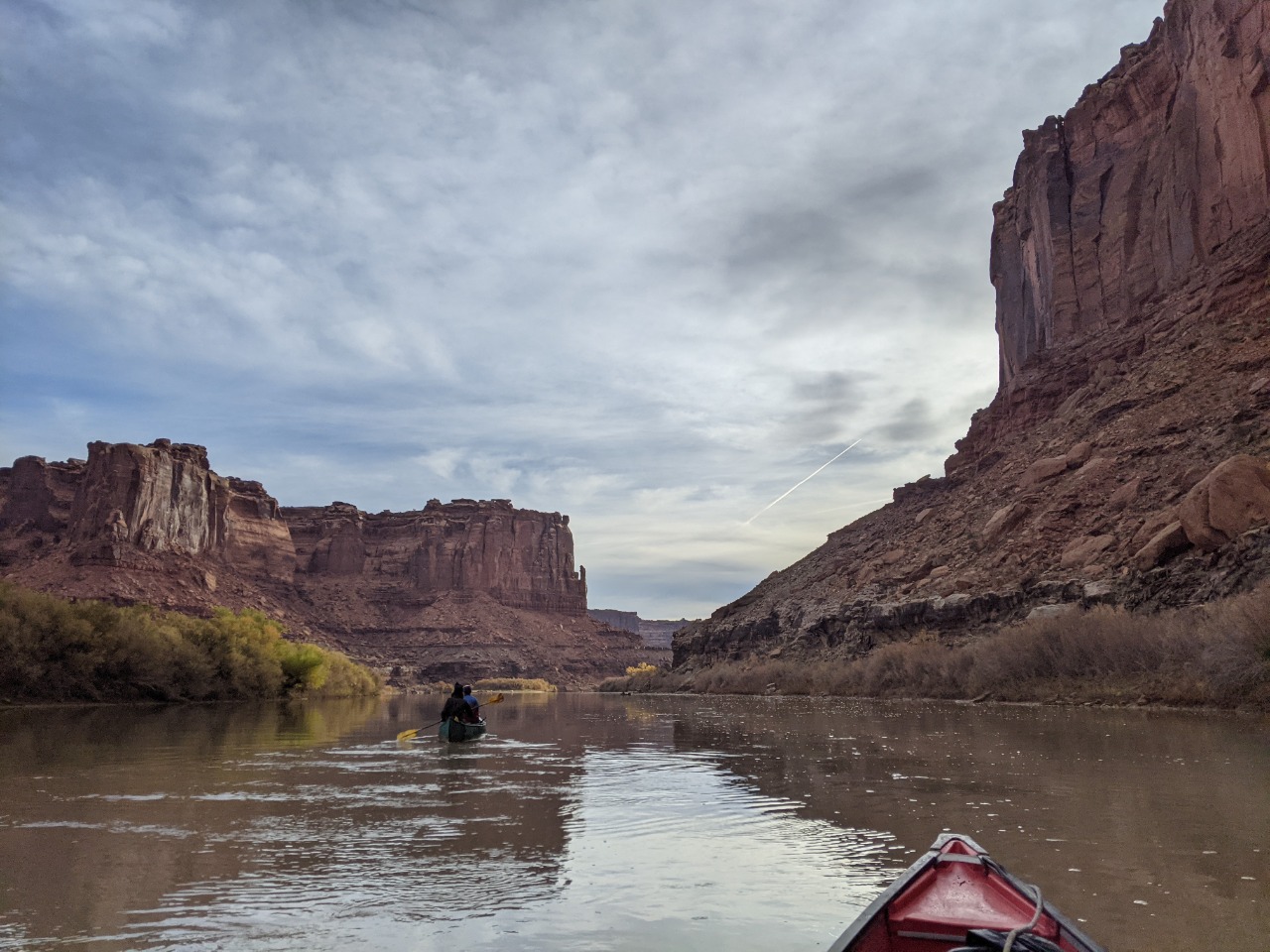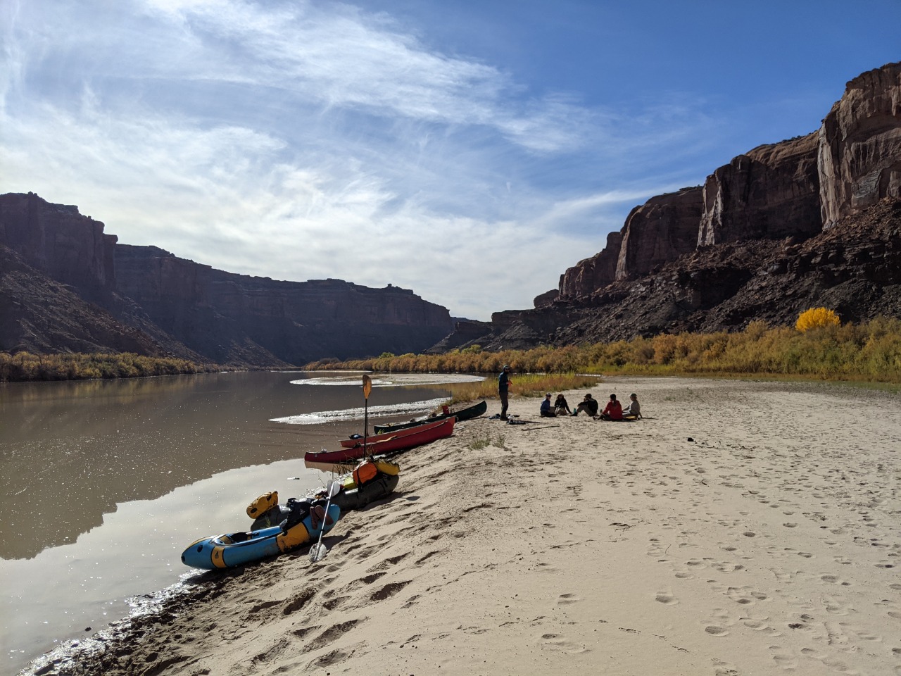 A relaxed paddle down Labyrinth Canyon November 10 - 14, 2021 -- compiled by Jeff DePree Jeff DePreeFrank B.Kerry R. I’ve had a variety of paddling partners through the years. There are the loquacious and the introspective, the fiercely competitive and those that resolutely refuse to paddle. I was initially rather reticent to accept my assigned partner for this trip. I put out ads on a wiffleball group chat and a hiking page in desperate bids to fill my empty canoe seat. Whether it was simple bigotry, or the product of an ongoing war with my dog-walking neighbors, I was determined not to get stuck with the poop bucket. But when Thursday morning arrived, and the rising sun showed down on the front half of a canoe bereft of passenger and gear, I could find little recourse. Frank made the first contribution. It was entirely avoidable. We still had to run the shuttle through Green River, where we would have easy access to a number of trash cans and dumpsters, not to mention toilets that didn’t even require the use of a plastic receptacle. But irrespective of this, a prodigious portion found its way into a produce bag and subsequently into the otherwise empty bucket, that, until this point in its privileged existence, had only ever been made to hold largely odorless oats. I used a sharpie to draw a smiley face on one side of the bucket, and on the other established a simple accounting system with one hash mark under Frank’s name. And as I beheld the bucket’s gleeful expression, seemingly enthralled by the prospect of the grand adventure on which it would soon embark, I couldn’t help feeling that I had been unfair. I had shown no gratitude for the burden this brave little bucket would be made to bear, but had instead sought to ostracize it, to find any excuse not to have it accompany me for the next 65 miles. In the first few hours, all my worst fears would be realized. A strong headwind kicked up and carried a continuous wave of stench the length of the canoe to my waiting nostrils. I was now convinced that this trip that I had anticipated for so many years would be realized as four days of progressively worsening olfactory agony. Eventually acquiescing to the slew of protestations that followed, Frank maneuvered his canoe over, opened the bucket, double-bagged his earlier installment, and screwed the lid shut, much tighter than before. These extra twists, that had initially been neglected, improved the situation immensely. And we spent the next four days together, through the addition of twenty additional wag bags, with no further provocation for disharmony between the bucket and I. It turned out to be a most agreeable paddling partner. And so, it was a bittersweet goodbye when we finally landed at the takeout and lashed the bucket to the roof of Frank's car, to be cast into the first receptacle large enough to hold it. Commingled in the bucket was the sum total of 3 potlucks around a fire, the secluded beaches, and the tall canyon grasses. The bucket was the trip in its entirety, reduced down and contained with an impermeable seal. The bucket was all of us. ![]() ![]() ![]() ![]() ![]() ![]() The stretch of river between I-70 and Canyonlands feels impossibly remote. In four days of paddling, we saw a raft, a canoe group, and two hikers who were inexplicably clinging to the slickrock just above the water line. The ramshackle remnants of farms offered no signs of life. But the tendrils of modernity accompanied us throughout, both on the dirt roads and OHV tracks that snaked through the desert, and in the skies overhead. And we would sometimes be reminded of their presence with the roar of a nearby engine or the petulant buzzing of a pack of dirt bikes. Most of these sounds never manifested themselves in any visible form. Most would reverberate along the canyon walls, proffering few clues to their provenance, and would soon fade away, subdued by the overwhelming stillness of the desert. Then on the third day, I found myself paddling far ahead, while the rest of the crew drifted lackadaisically behind, making impressively little progress despite a steady current. But in the midst of this idyll, a brilliant yellow flash exploded over the high vermillion cliffs. A shiny floatplane banked towards us and traced the course of the river, finally circling around to settle into the waters beside the other canoes. “Nice day for it.” The pilot had stepped out onto his pontoon and made an awkward attempt to greet our party. With his confident tone, he tried desperately to convince us that we lived in a world where a friendly neighborhood aviator could pop over for a quick chat with his fellow recreators. He wanted us to believe that he was one of us - that his 200 horsepower, $100,000 flying machine, which could propel him effortlessly through sea and sky, skipping along the edges of the towering monoliths as one might hop along the stones in a garden path, was one and the same as our decrepit antique watercraft that might convey us some twenty miles in an 8-hour day. Landing and subsequently launching back into the sky was as trivial as the momentary pause you might make to greet a fellow hiker in the midst of a wooded path. Our group stared blankly at him, their reply lost in a swirl of contradictions. They fumbled for anywhere in their mental map to place this uninvited ambassador from another world. Even half a mile downriver, where I floated listlessly along with my insensate poop bucket companion, the silence was palpable. “Well, I gotta go check on my friends, the base jumpers.” The befuddled reception had finally become too much for the airman, and he restarted the engine, returned to the air, and executed a few delicate maneuvers along the canyon walls, before leaving our view for good. ![]() ![]() ![]() ![]() ![]() ![]() ![]() ![]() ![]() ![]() ![]() ![]() ![]() ![]() ![]() ![]() ![]() ![]() ![]() ![]() ![]() ![]() ![]() ![]() |