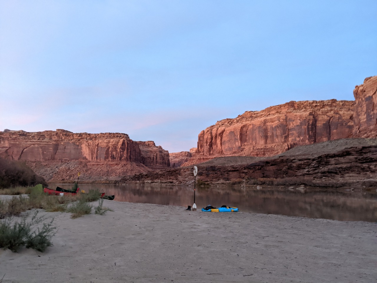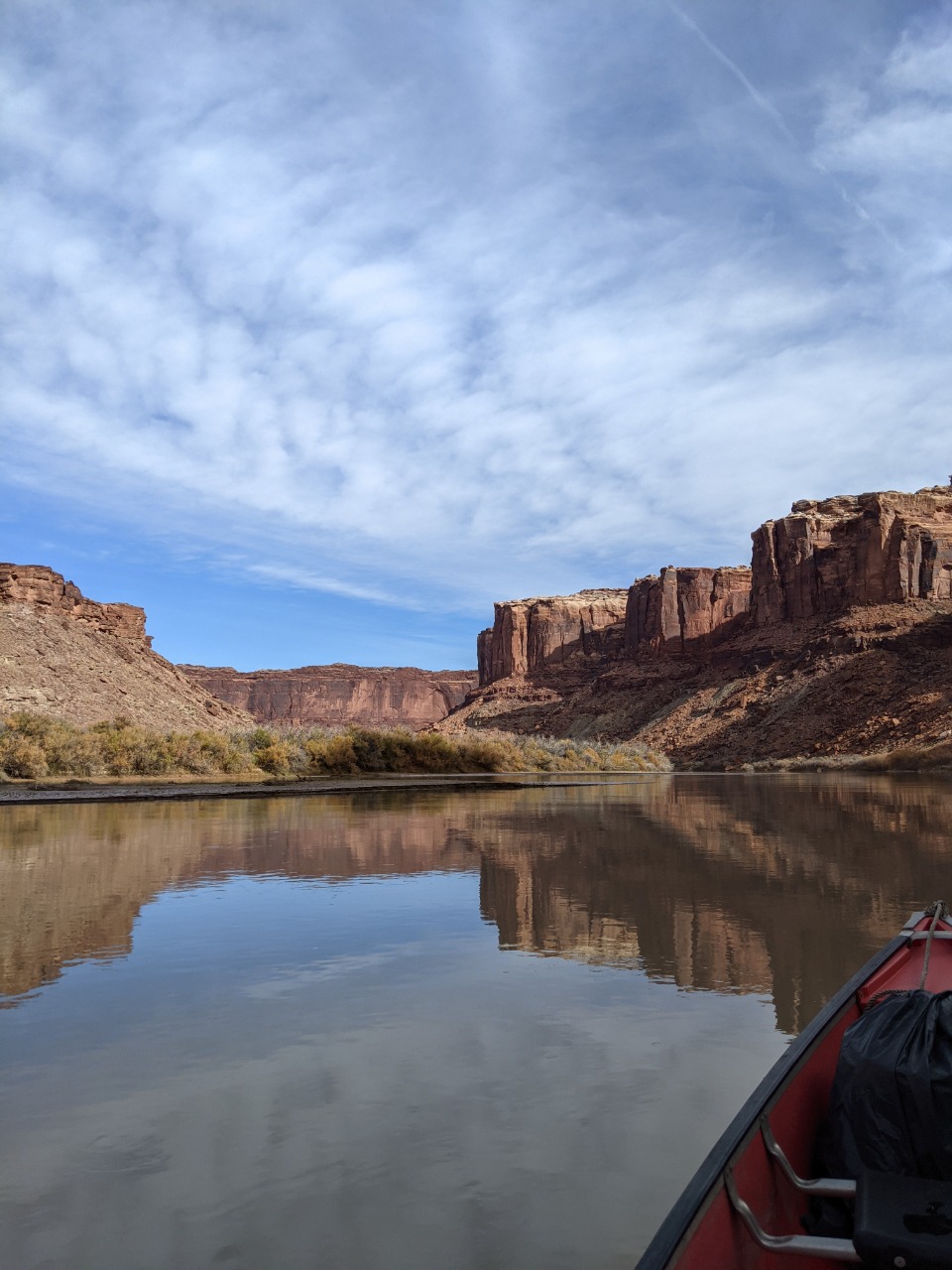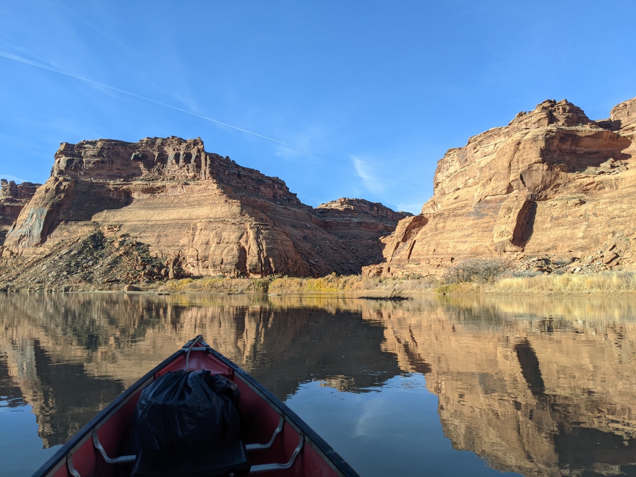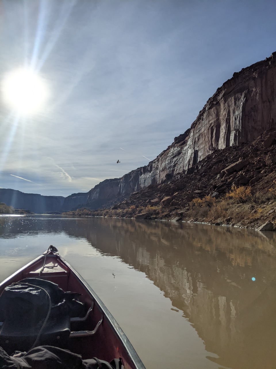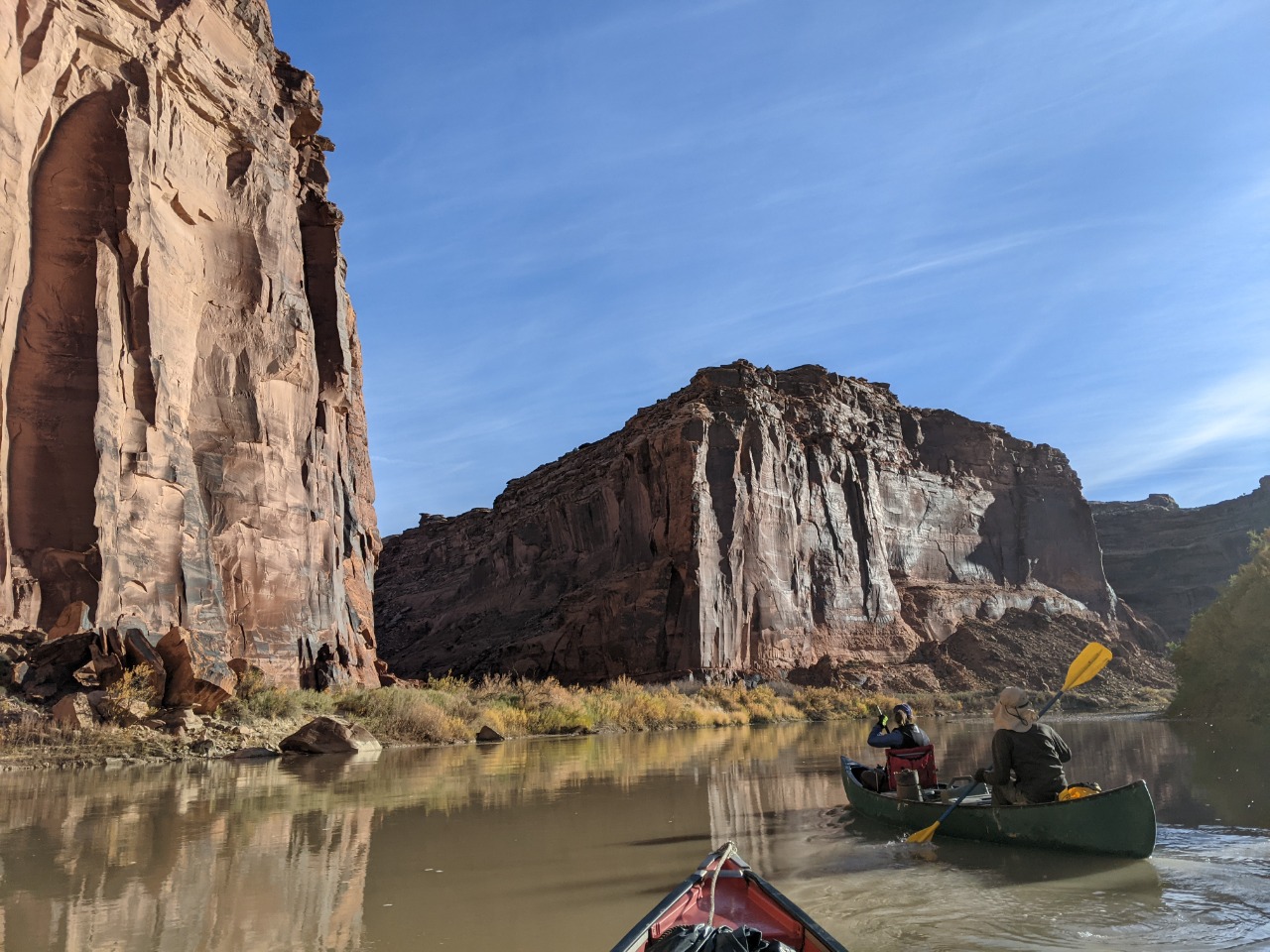 A relaxed paddle down Labyrinth Canyon November 10 - 14, 2021 -- compiled by Jeff DePree Jeff DePreeFrank B.Kerry R. I’ve had a variety of paddling partners through the years. There are the loquacious and the introspective, the fiercely competitive and those that resolutely refuse to paddle. I was initially rather reticent to accept my assigned partner for this trip. I put out ads on a wiffleball group chat and a hiking page in desperate bids to fill my empty canoe seat. Whether it was simple bigotry, or the product of an ongoing war with my dog-walking neighbors, I was determined not to get stuck with the poop bucket. But when Thursday morning arrived, and the rising sun showed down on the front half of a canoe bereft of passenger and gear, I could find little recourse. Frank made the first contribution. It was entirely avoidable. We still had to run the shuttle through Green River, where we would have easy access to a number of trash cans and dumpsters, not to mention toilets that didn’t even require the use of a plastic receptacle. But irrespective of this, a prodigious portion found its way into a produce bag and subsequently into the otherwise empty bucket, that, until this point in its privileged existence, had only ever been made to hold largely odorless oats. I used a sharpie to draw a smiley face on one side of the bucket, and on the other established a simple accounting system with one hash mark under Frank’s name. And as I beheld the bucket’s gleeful expression, seemingly enthralled by the prospect of the grand adventure on which it would soon embark, I couldn’t help feeling that I had been unfair. I had shown no gratitude for the burden this brave little bucket would be made to bear, but had instead sought to ostracize it, to find any excuse not to have it accompany me for the next 65 miles. In the first few hours, all my worst fears would be realized. A strong headwind kicked up and carried a continuous wave of stench the length of the canoe to my waiting nostrils. I was now convinced that this trip that I had anticipated for so many years would be realized as four days of progressively worsening olfactory agony. Eventually acquiescing to the slew of protestations that followed, Frank maneuvered his canoe over, opened the bucket, double-bagged his earlier installment, and screwed the lid shut, much tighter than before. These extra twists, that had initially been neglected, improved the situation immensely. And we spent the next four days together, through the addition of twenty additional wag bags, with no further provocation for disharmony between the bucket and I. It turned out to be a most agreeable paddling partner. And so, it was a bittersweet goodbye when we finally landed at the takeout and lashed the bucket to the roof of Frank's car, to be cast into the first receptacle large enough to hold it. Commingled in the bucket was the sum total of 3 potlucks around a fire, the secluded beaches, and the tall canyon grasses. The bucket was the trip in its entirety, reduced down and contained with an impermeable seal. The bucket was all of us. ![]() ![]() ![]() ![]() ![]() ![]() The stretch of river between I-70 and Canyonlands feels impossibly remote. In four days of paddling, we saw a raft, a canoe group, and two hikers who were inexplicably clinging to the slickrock just above the water line. The ramshackle remnants of farms offered no signs of life. But the tendrils of modernity accompanied us throughout, both on the dirt roads and OHV tracks that snaked through the desert, and in the skies overhead. And we would sometimes be reminded of their presence with the roar of a nearby engine or the petulant buzzing of a pack of dirt bikes. Most of these sounds never manifested themselves in any visible form. Most would reverberate along the canyon walls, proffering few clues to their provenance, and would soon fade away, subdued by the overwhelming stillness of the desert. Then on the third day, I found myself paddling far ahead, while the rest of the crew drifted lackadaisically behind, making impressively little progress despite a steady current. But in the midst of this idyll, a brilliant yellow flash exploded over the high vermillion cliffs. A shiny floatplane banked towards us and traced the course of the river, finally circling around to settle into the waters beside the other canoes. “Nice day for it.” The pilot had stepped out onto his pontoon and made an awkward attempt to greet our party. With his confident tone, he tried desperately to convince us that we lived in a world where a friendly neighborhood aviator could pop over for a quick chat with his fellow recreators. He wanted us to believe that he was one of us - that his 200 horsepower, $100,000 flying machine, which could propel him effortlessly through sea and sky, skipping along the edges of the towering monoliths as one might hop along the stones in a garden path, was one and the same as our decrepit antique watercraft that might convey us some twenty miles in an 8-hour day. Landing and subsequently launching back into the sky was as trivial as the momentary pause you might make to greet a fellow hiker in the midst of a wooded path. Our group stared blankly at him, their reply lost in a swirl of contradictions. They fumbled for anywhere in their mental map to place this uninvited ambassador from another world. Even half a mile downriver, where I floated listlessly along with my insensate poop bucket companion, the silence was palpable. “Well, I gotta go check on my friends, the base jumpers.” The befuddled reception had finally become too much for the airman, and he restarted the engine, returned to the air, and executed a few delicate maneuvers along the canyon walls, before leaving our view for good. ![]() ![]() ![]() ![]() ![]() ![]() ![]() ![]() ![]() ![]() ![]() ![]() ![]() ![]() ![]() ![]() ![]() ![]() ![]() ![]() ![]() ![]() ![]() ![]() |