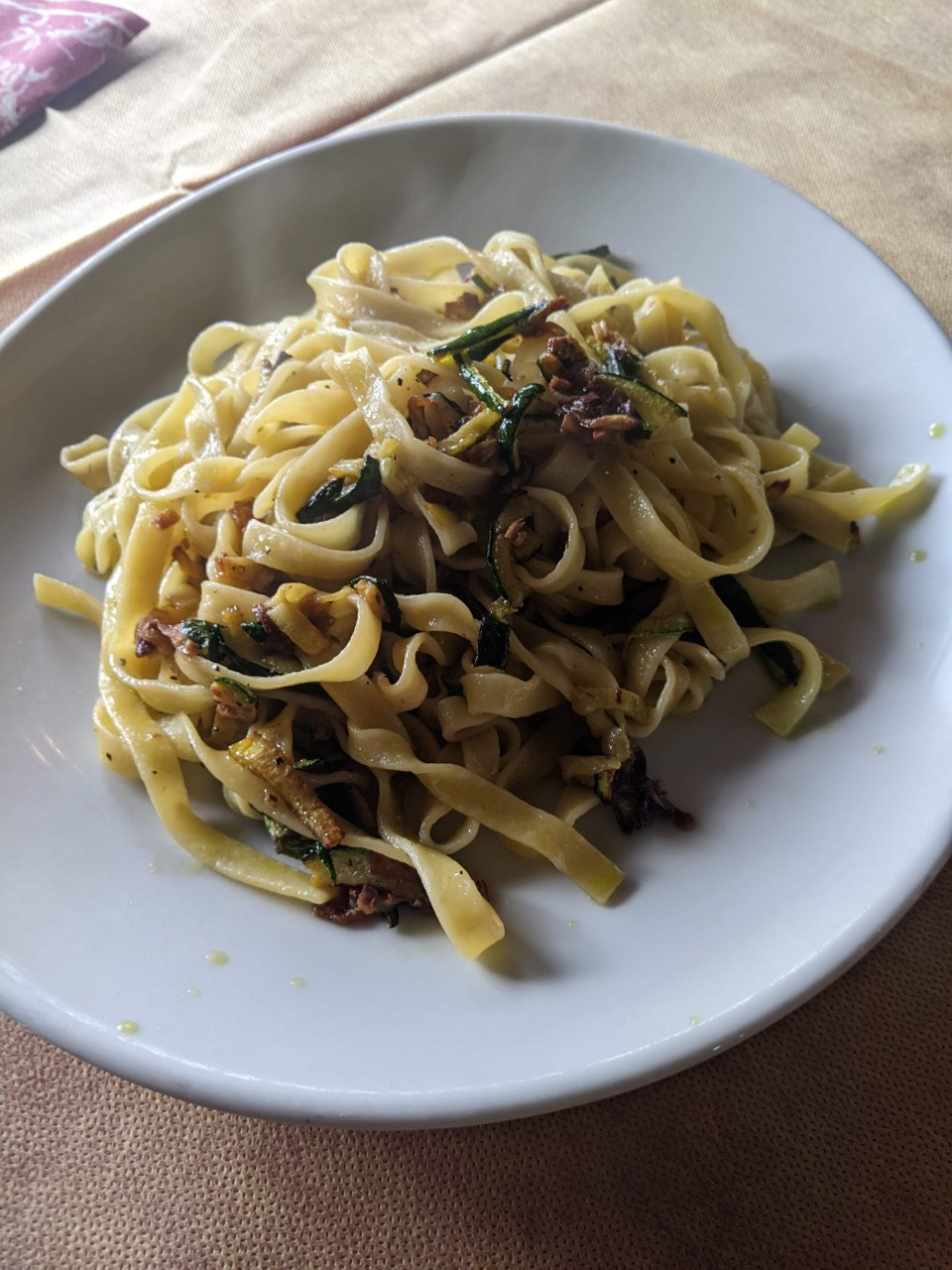 ![]() A small clump of noodles, zucchini, and ginger came out to $15 after the various charges for water, bread, and service.