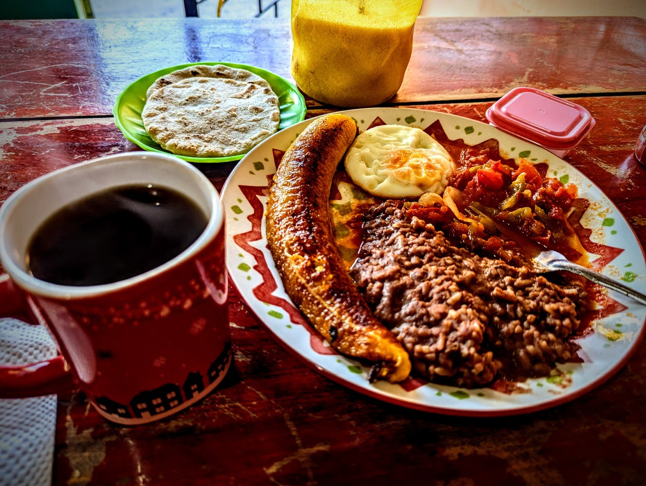 A very slow, grueling ride/hike through some northern hinterlands. January 2 - 8, 2026 -- compiled by Jeff DePree featured on jeffdepree.com I don’t do many Bikepacking.com routes and this one reminded me of one reason why. Extremely steep, rocky paths meant that I was pushing my bike most of the time, often taking hours to go a few miles. But this was probably far preferable to the heat, noise, and fumes of the paved roads. While there are many routes I didn’t try, I’m inclined to guess that El Salvador might be a terrible place to ride a bike. But given the wonderfully friendly people, stunning landscapes, and yummy food, it’s probably great for other things – I suspect a motorcycle trip could be really fun. bikepacking.com/routes/trans-salvador/ Bike The bike selection in Santa Ana, the second-largest city, left a lot to be desired. Nearly every available bike is a low-quality Corsario that is better-suited to short hops around town than cross-country adventures. Any other brands are quite overpriced. I was wandering the streets of the market when I passed a guy rolling a bike with a “Se Vende” sign. I paid him $40, then bought a $10 rack from a nearby stall, and paid the guy in the adjacent stall $1.50 to install it. This bike was in no way up to the task at hand and slowly disintegrated over the course of the trip, but it was at least very cheap to repair it – I got 2 sets of new brakes installed for $3. It’s hard to imagine a bike that would be capable of riding many of the roads on this route, but here’s a wishlist: extremely lightweight, 29x2.2” tires with excellent tread, granny gears out the wazoo, disc brakes, a geometry conducive to carrying… Since most of the transit options consist of old American school buses with no cargo bays, you would probably need to hitchhike with a truck if you ever wanted a break from riding. I gifted mine to a college friend of my brother’s, who had a resort in San Blas. Food It’s hard to imagine a more boring cuisine, but everything’s pretty tasty and easy to find for cheap. Pupusas are ubiquitous and cost 75 cents nearly everywhere. You can either order the ready-made revueltas or cheese, or wait 20 minutes for ones with spinach, squash flowers, or a dozen other things. Licuados are also nearly everywhere and tend to come in around $1.50. My go-to was banana with oats and milk, but you can order them with any number of fruits or syrup. A cup of coffee is 35 cents, unless you go to a fancy coffee shop, where it costs the same as anywhere else in the world. I got food (or water) poisoning on my last day. I have no idea where I picked that up. Lodging. It’s often possible to find an air-conditioned room with private bath for $20. I tended to get attacked by mysterious insects in the rooms without AC, so avoided those whenever possible. In the beach areas, hostels full of surfers tend to be the only affordable option, but the one where I stayed was exceptionally quiet. Environment Dry season means that there’s zero rain and fewer mosquitos, but this leads to an abundance of dust that turns your snot black and reduces traction. In theory, it’s exceptionally hot, but I never really noticed it under the dense canopy, and some of the windier nights actually merited a jacket. I got lots of bug bites, but never managed to attribute a single one. I’m pretty terrified by the lethal kiss of the chagas bugs and all the diseases carried by mosquitos. A billboard on the way to the airport recommended taking an anti-parasitic twice a year. I caught glimpses of a few colorful birds, two pacas, and an iguana. Dozens of dogs chased me, but none seemed particularly intent on eating me. Flights I bought my flight from Denver through Atlanta to San Salvador a few days beforehand using the GoWild pass for $39. The return flight through Dallas, also purchased on the pass a few days before, was $91. I think these were purely taxes and as cheap as it gets. ![]() The $10 A Train is only slightly faster than the 60-cent airport microbus.